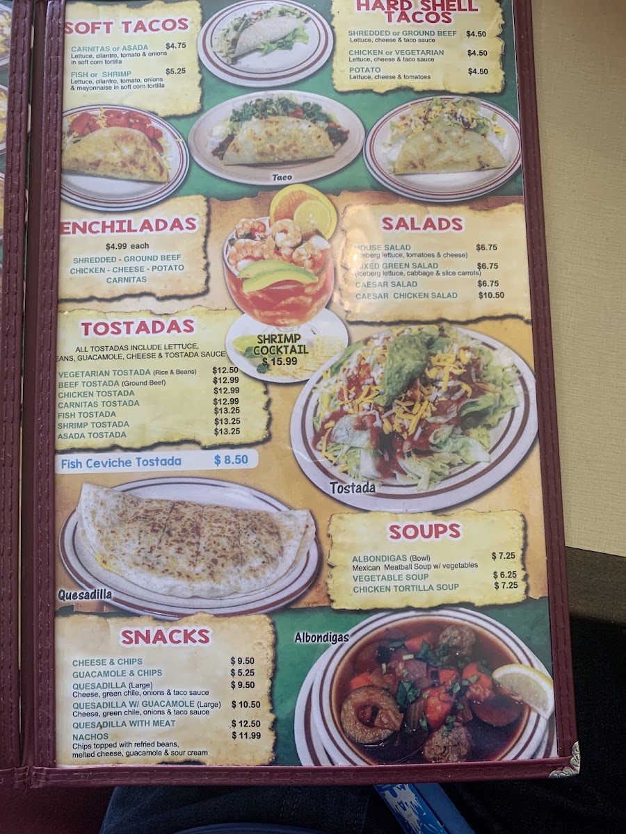 As you step into the cozy yet spacious dining area, you're greeted by a friendly staff eager to make your dining experience memorable. The menu boasts an impressive selection of soft tacos, tostadas, and burritos that are sure to excite your taste buds. Special highlights include the savory Carnitas and Asada soft tacos, as well as an extensive variety of tostadas, such as the Chicken Tostada and the unique Fish Tostada. Each option reflects a commitment to quality ingredients and authentic recipes.